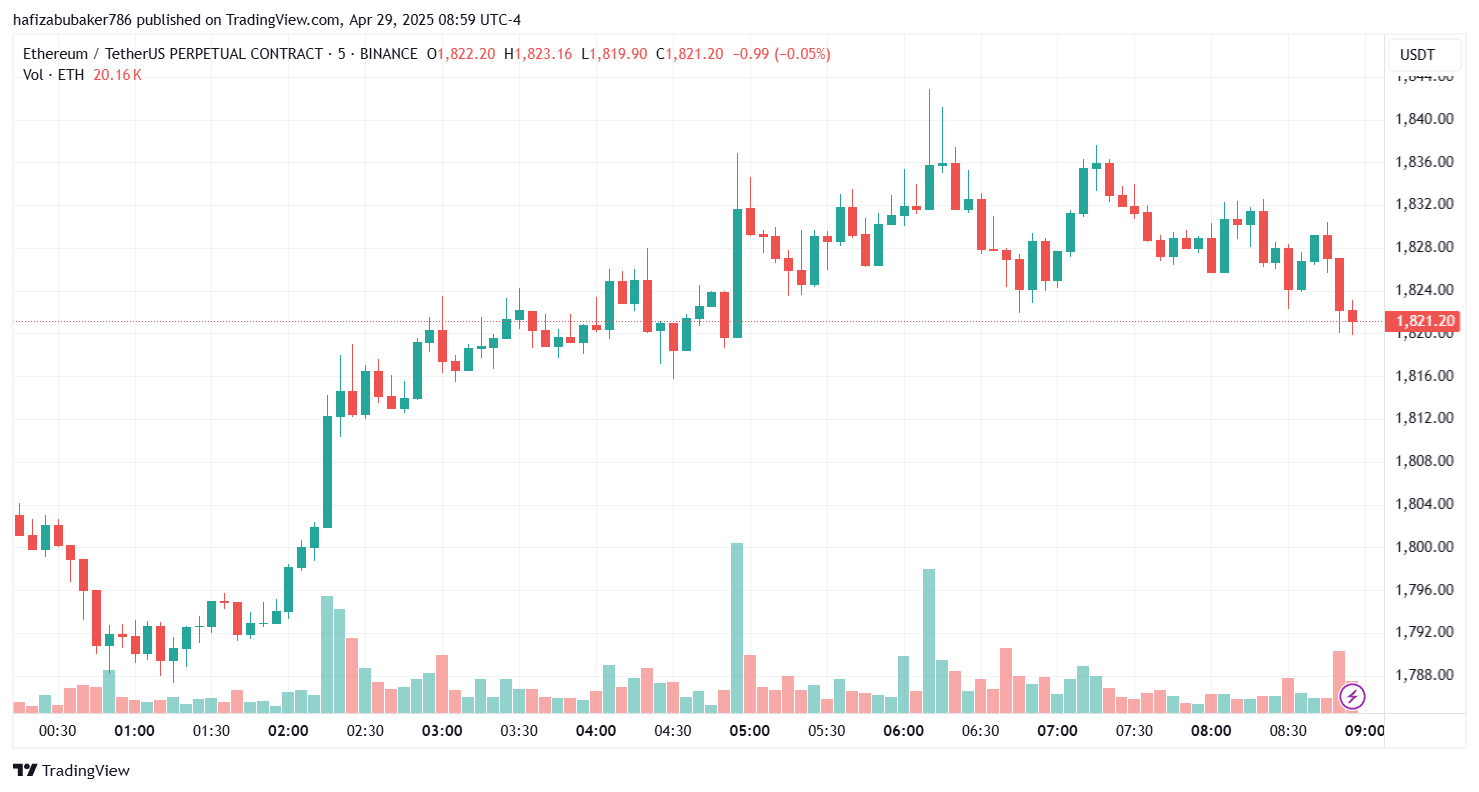 Volume Profile: Noticeable spike at $1,815 on April 29, indicating bids.