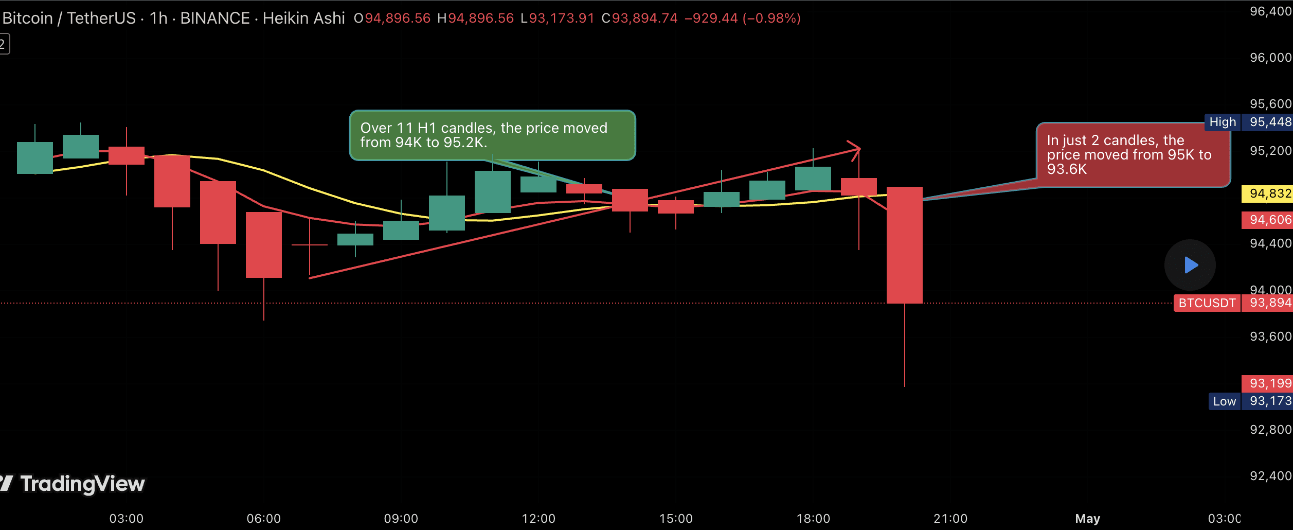 $BTC sta attualmente oscillando in un intervallo ristretto, muovendosi su e giù. L'uptrend D1 si è già esaurito, passando da 82K alla zona 95K. Ora, stiamo aspettando una correzione D1 per considerare di andare LONG di nuovo. Durante questo downtrend D1, possiamo fare scalping SHORT su H4. Tuttavia, non scelgo di COMPRARE sopra 95K per inseguire 97K. Invece, aspetterò di SHORTARE o, se non si presenta alcuna opportunità SHORT, aspetterò di LONGARE di nuovo su D1.