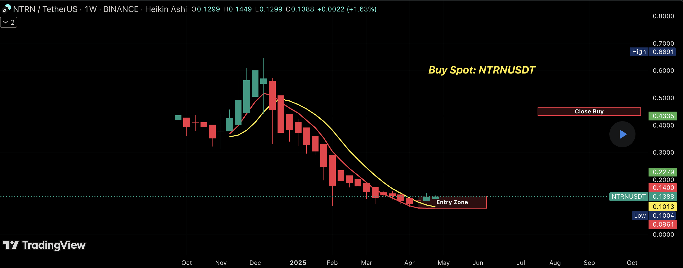Ingresso: Circa $0.138 (o attendere un segnale di acquisto quando i timeframe più piccoli si correggono)