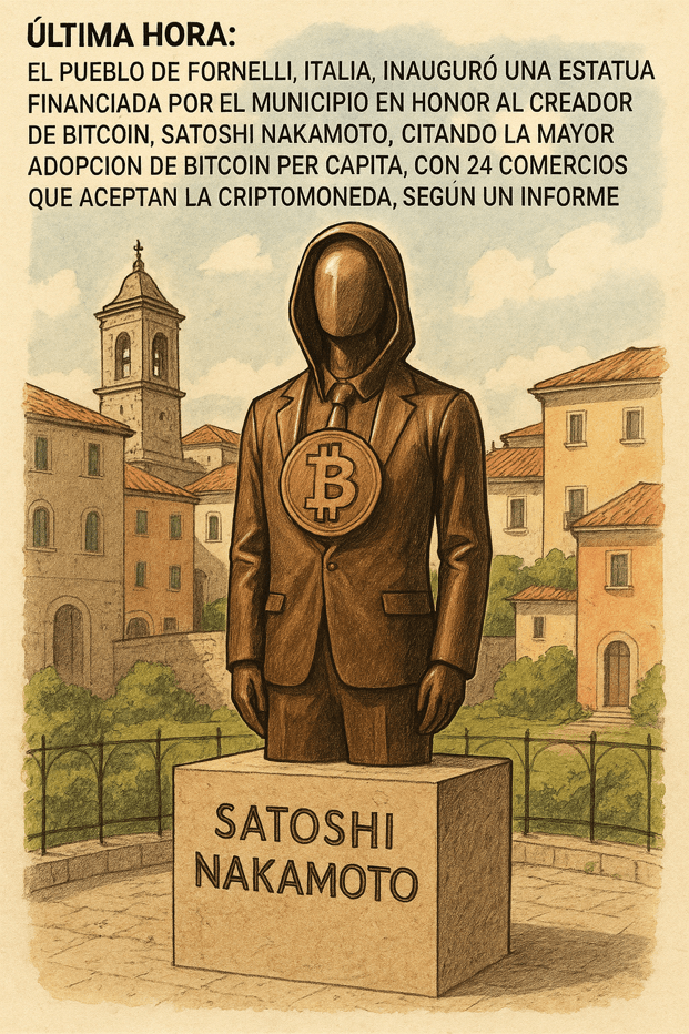 ULTIMA ORA: Il comune di Fornelli, Italia, ha inaugurato una statua finanziata dal comune in onore del creatore di Bitcoin, Satoshi Nakamoto, citando la maggiore adozione di Bitcoin pro capite, con 24 commerci che accettano la criptovaluta, secondo un rapporto.