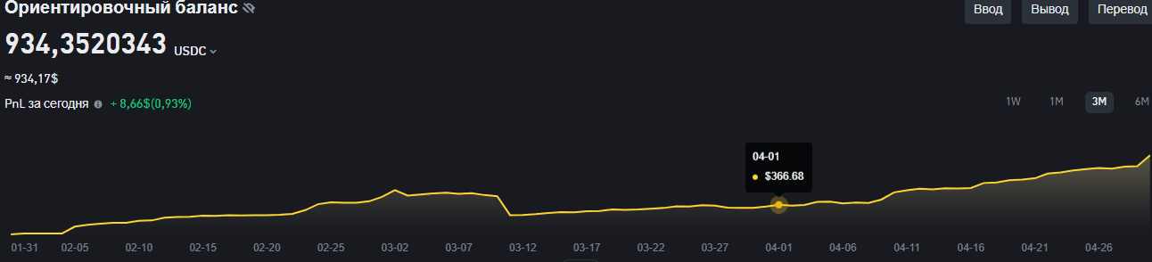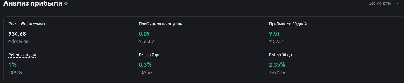 PnL negli ultimi 30 giorni: +2.35% in prodotti passivi (senza considerare l'aumento del saldo con i rifornimenti)