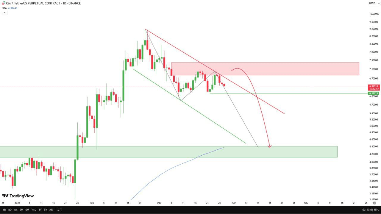 $OM Il mercato si muove attualmente all'interno di uno schema di correzione a zig-zag (ABC), e sembra che siamo nella onda C, l'ultima fase di questa struttura. La onda A è già iniziata con un movimento ribassista significativo, seguita dalla onda B, che è stata un rialzo contrario alla tendenza. Ora, la onda C avanza, formando l'ultima fase di questo ciclo correttivo.