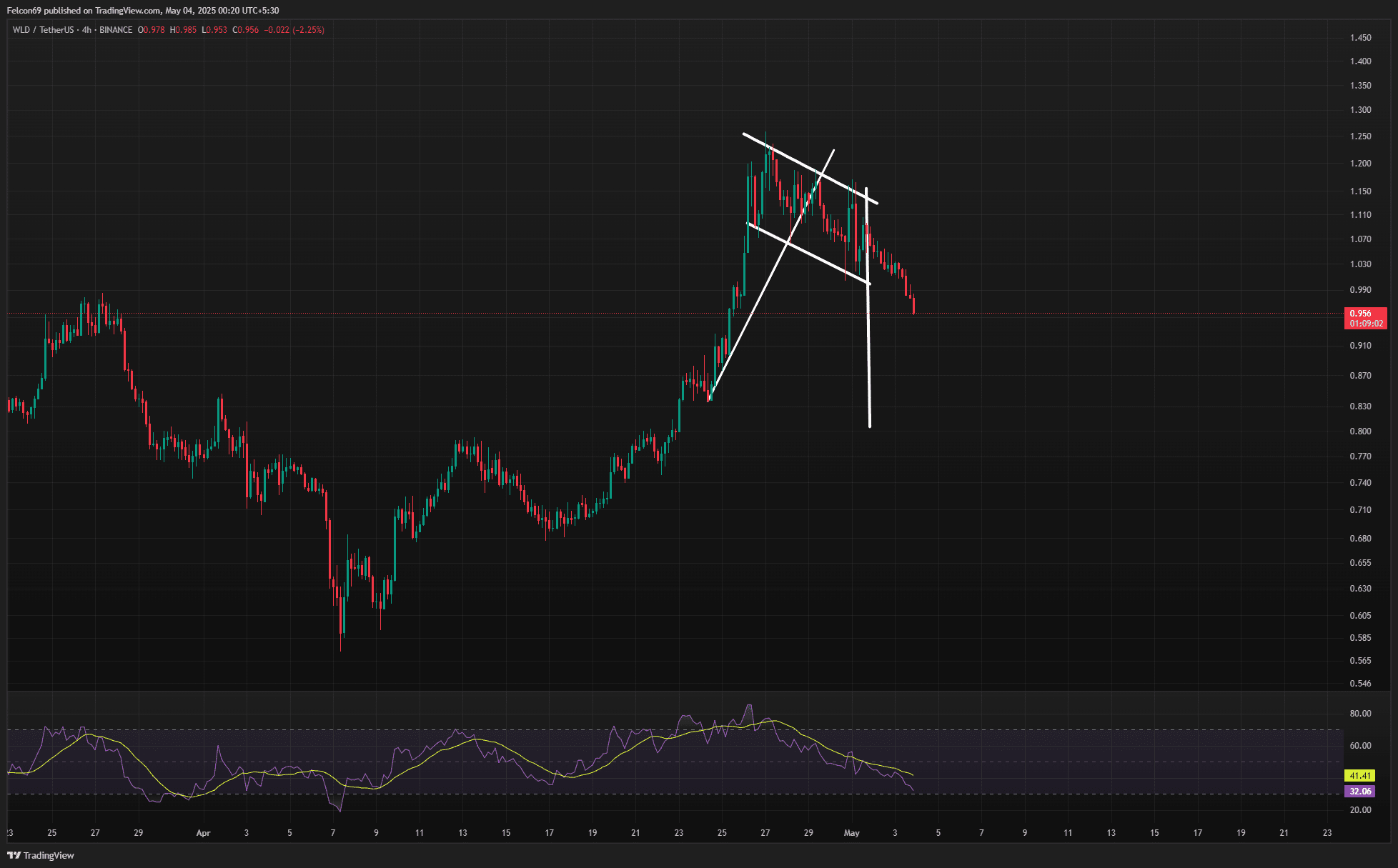 1) Questo è il grafico WLD a 4 ore, che mostra un modello a cuneo ascendente 📉. Il prezzo è attualmente in un trend rialzista all'interno del cuneo, ma la formazione del cuneo suggerisce il potenziale per un breakdown ribassista mentre il prezzo si consolida in questo modello. L'RSI è a 41, indicando che la pressione di vendita sta aumentando e il mercato potrebbe presto passare a una fase ribassista, specialmente con il prezzo che testa la parte superiore del cuneo.