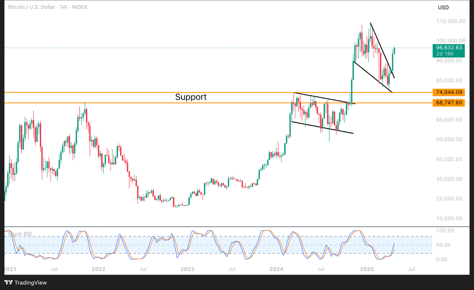 Minimo recente: Sceso a circa $74.500.