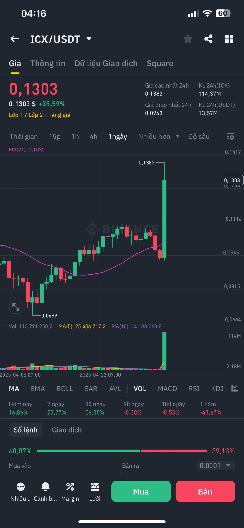 ICON ($ICX) – un progetto blockchain focalizzato sull'interoperabilità – ha appena registrato un aumento del +35,59% in 24 ore, raggiungendo un picco di 0,1382 USDT prima di una leggera correzione a 0,1303. Ma cosa c'è dietro questo balzo?