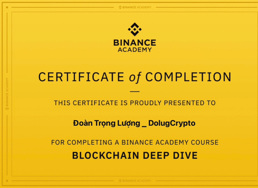 Ho appena completato il corso Blockchain Deep Dive di Binance Academy!
