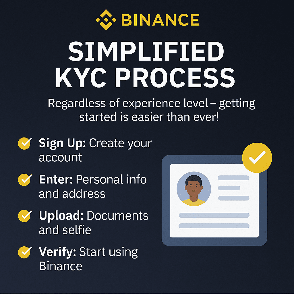 KYC (Know Your Customer) è un processo di verifica obbligatorio che assicura che gli utenti siano persone reali e non bot o truffatori. Binance lo utilizza per proteggere gli utenti e rispettare gli standard di sicurezza globali.