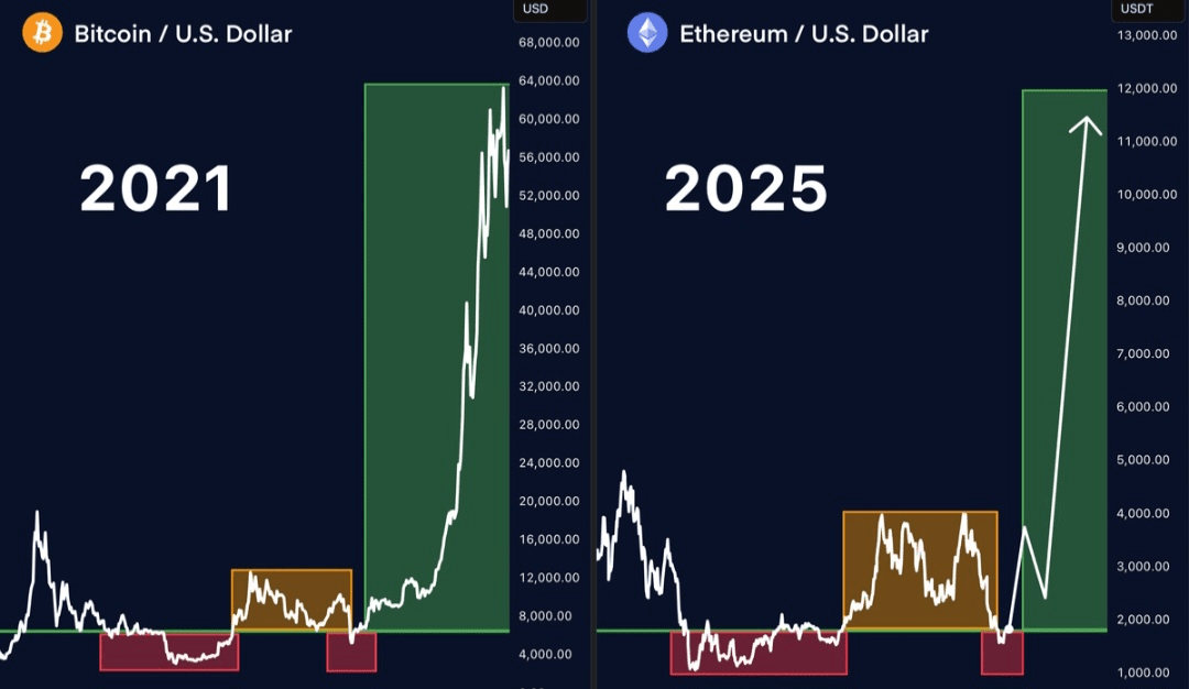 Ethereum sta ora cercando di riconquistare il range basso — se ci riesce, vedremo una stagione parabolica delle altcoin.