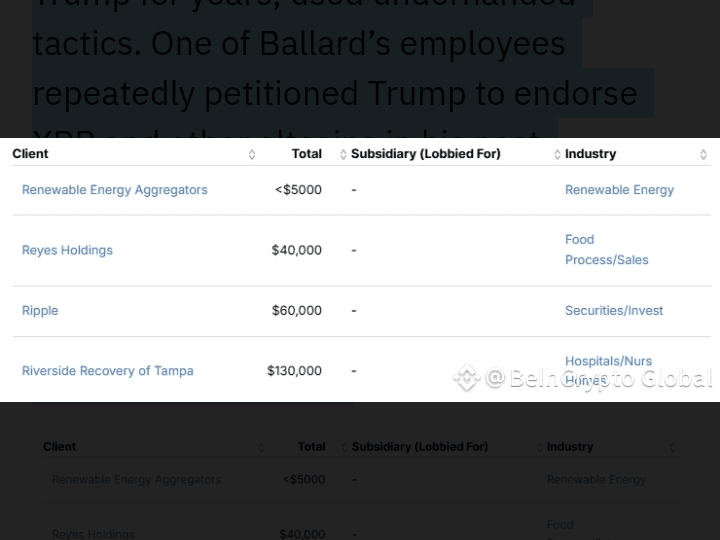 In particolare, Ripple Labs è anche un cliente di Ballard, che ha pagato il lobbyist $60.000 lo scorso anno. Quando il Presidente ha scoperto ciò, apparentemente si è infuriato.
