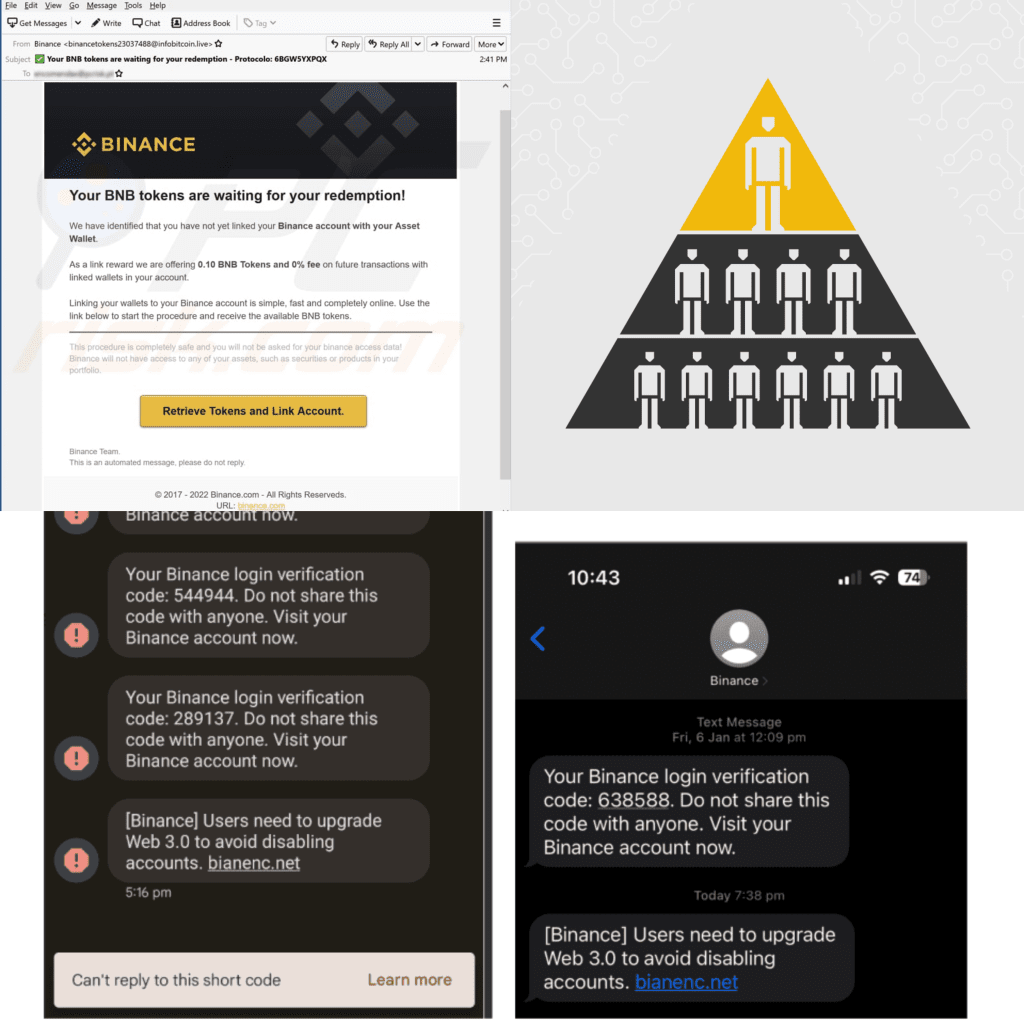 1️⃣ Phishing: I truffatori creano pagine false che imitano Binance per rubare le tue credenziali. Controlla sempre l'URL e utilizza l'autenticazione a due fattori.