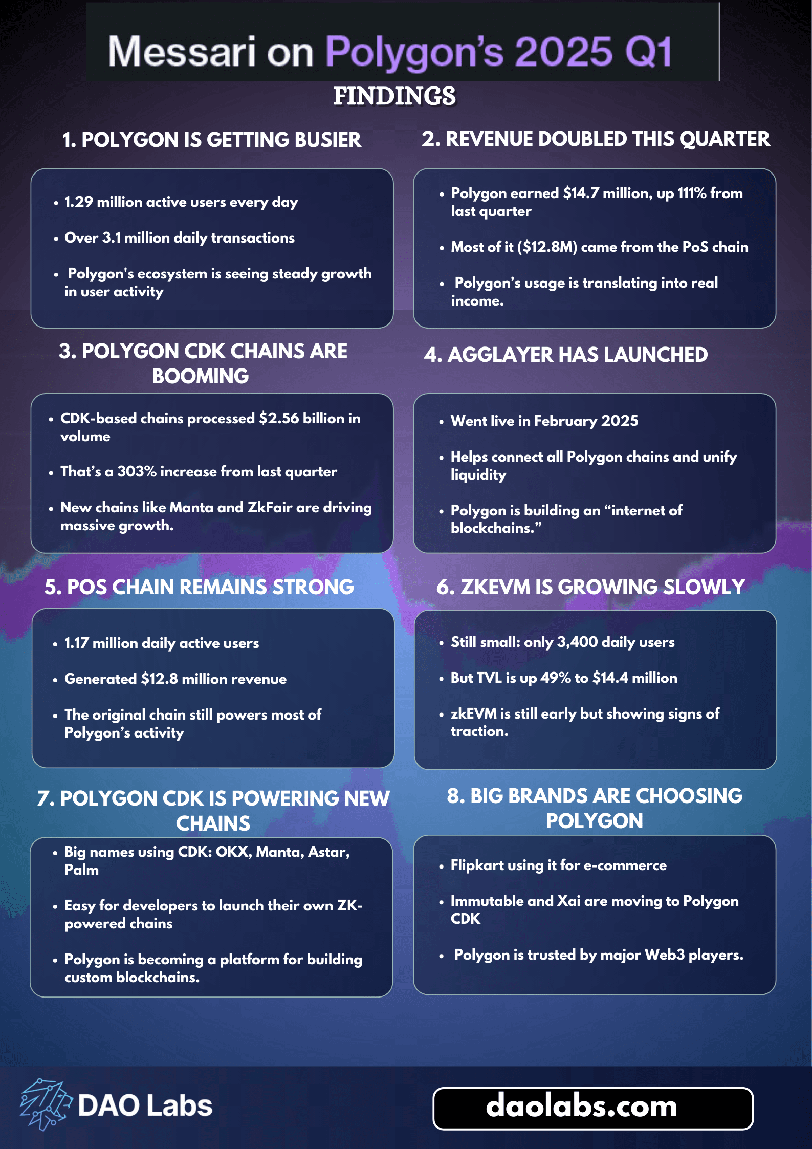 Il Q1 2025 ha dimostrato la continua leadership di Polygon nell'innovazione Layer-2, enfatizzando sicurezza, scalabilità e interoperabilità.
