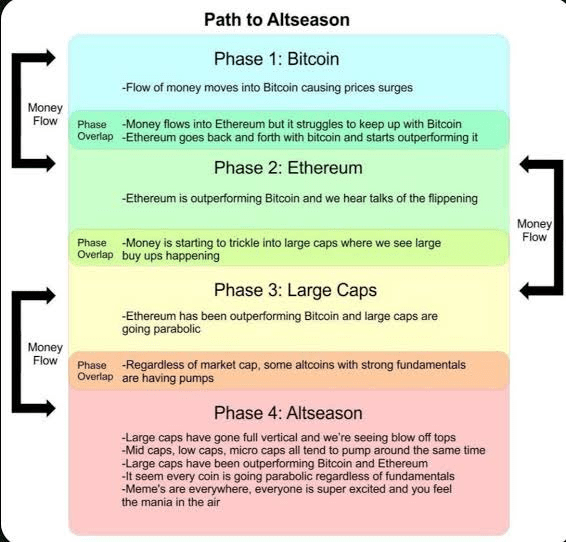 ✅ Comprendi il flusso di movimento del denaro — da BTC, a ETH, a large caps, poi a tutte le altcoin.