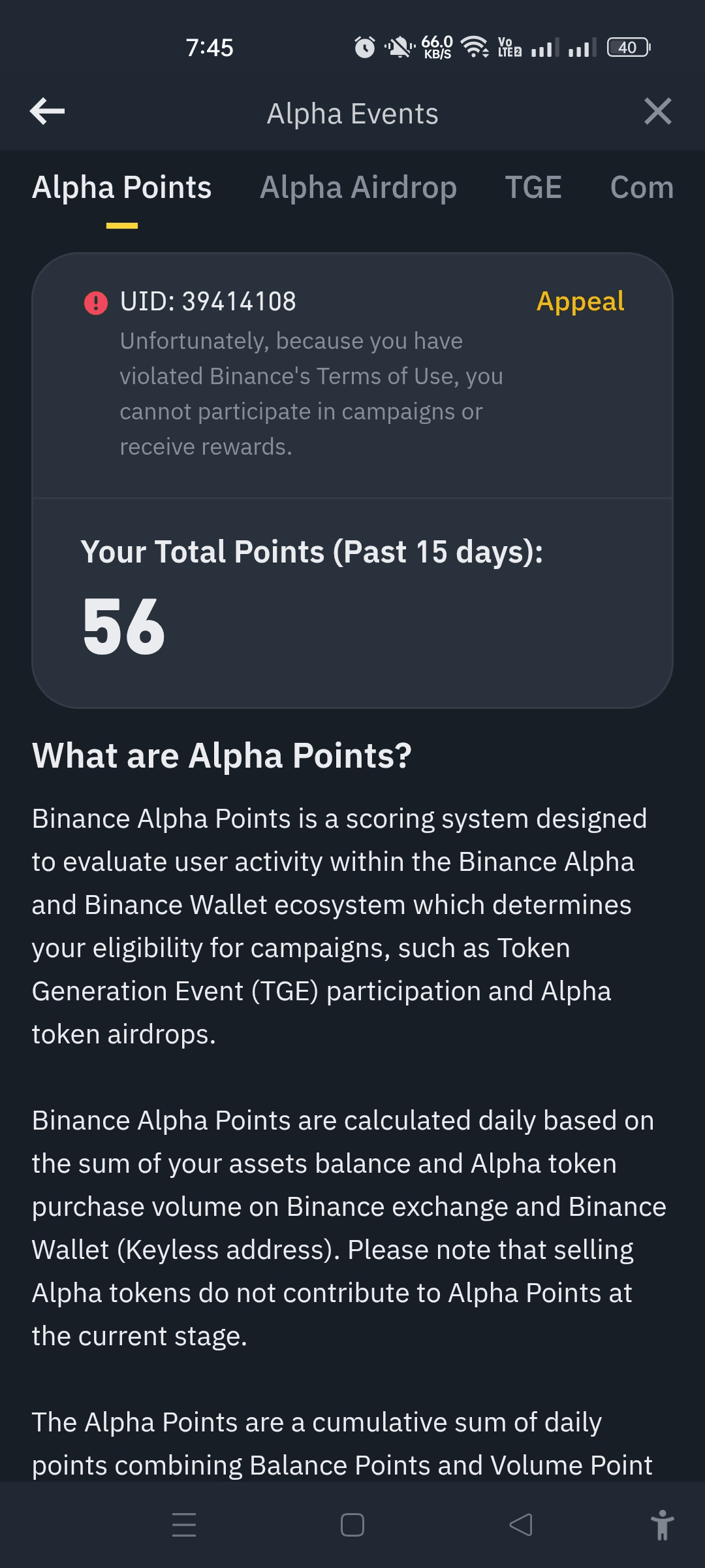 Sfortunatamente, poiché hai violato i Termini di Utilizzo di Binance, non puoi partecipare a campagne o ricevere premi.