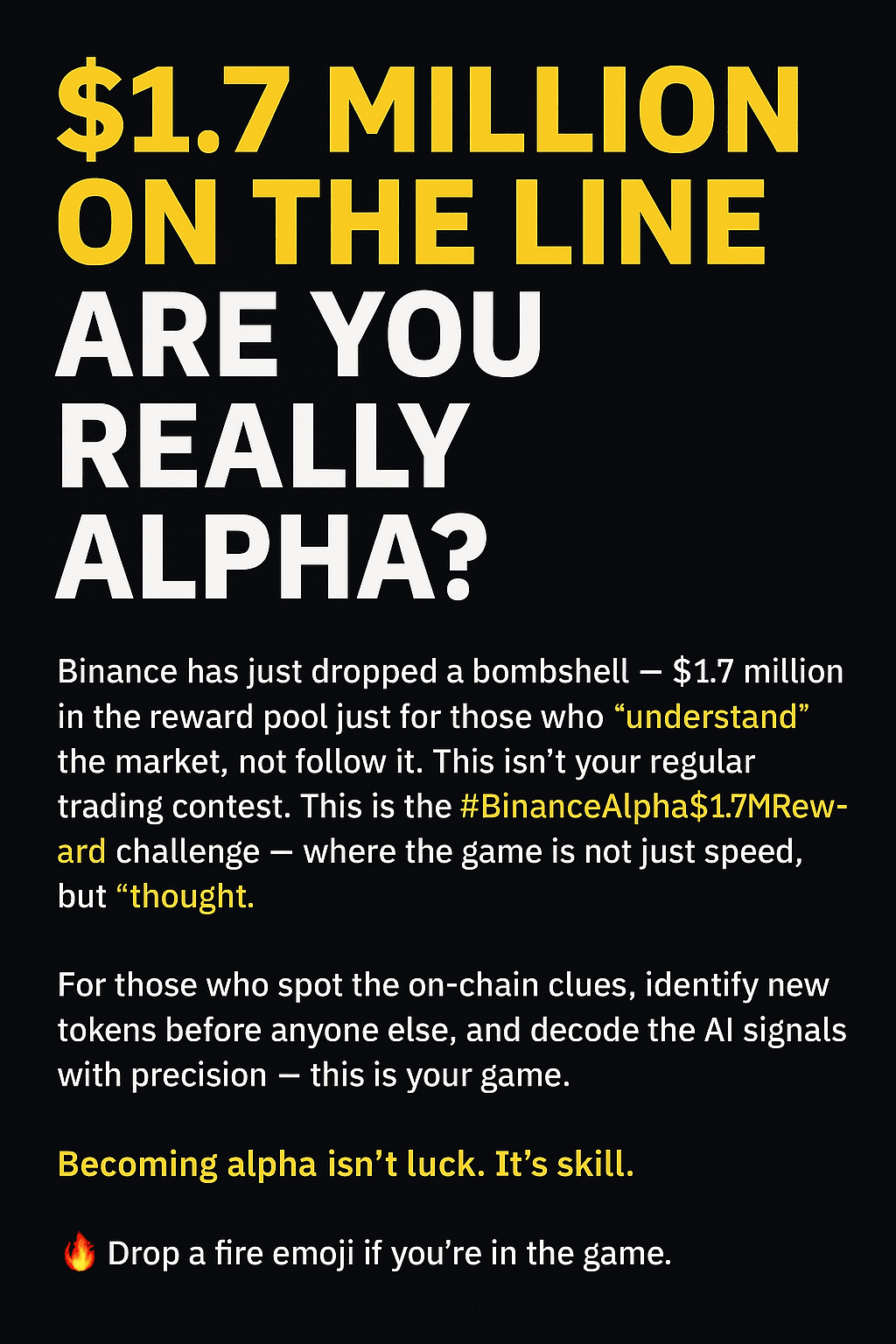 Binance ha appena svelato un enorme premio di $1,7 milioni — e questo non è per i fortunati, è per i furbi. Il #BinanceAlpha$1.7MReward è più di un semplice giveaway. È una sfida per coloro che possono leggere il mercato prima che parli.