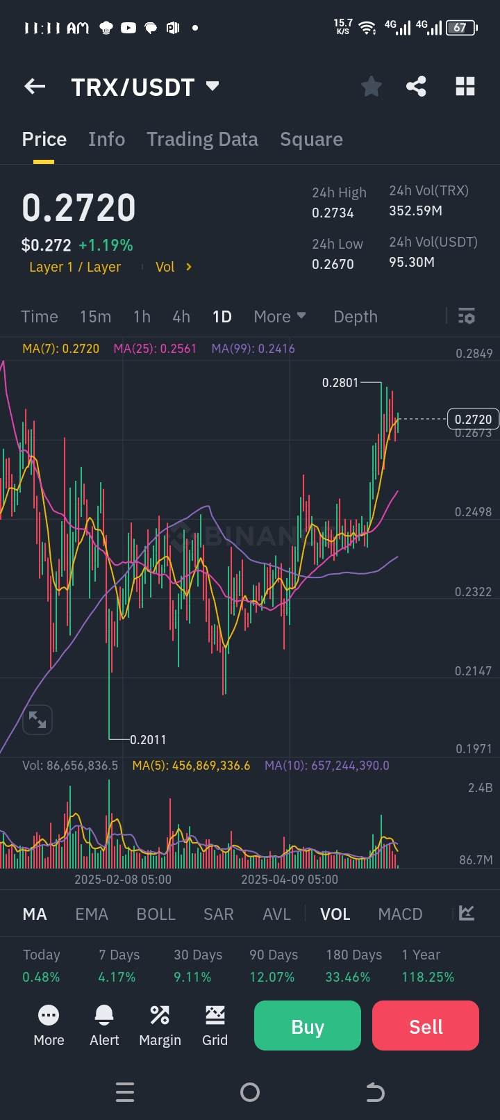 Aumento del volume: Il volume TRX nelle ultime 24 ore è di 352 milioni, il che mostra un forte interesse nel mercato.