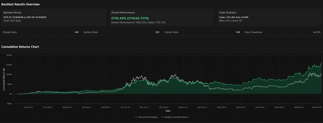 Sto cercando miglioramenti che potrebbero portare l'MDD sotto il 10% in modo che la strategia diventi più sicura per la leva. CorrAI potrebbe aiutare a sperimentare ulteriormente varianti di stop-loss o tempismo di esposizione per affrontare questo problema.