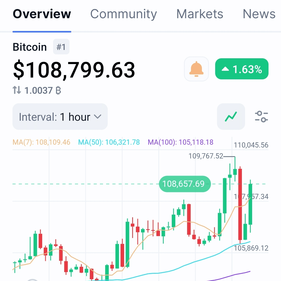 Al 22 maggio 2025, Bitcoin (BTC) è scambiato a circa $108,163, riflettendo un aumento dell'1.33% rispetto alla chiusura precedente.