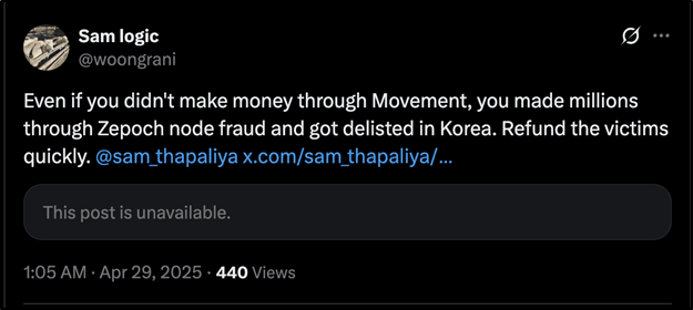 La scorsa settimana, Sam Thapaliya, fondatore del Protocollo Zebec, ha fatto notizia in uno scandalo che ha attirato l'attenzione dell'intera industria blockchain. Il rapporto di CoinDesk di Kessler sostiene che Movement Labs ha concesso a un intermediario segreto la possibilità di vendere unilateralmente 38 milioni di token MOVE, una decisione che ha scioccato gli stakeholder e gli esperti del settore, sollevando interrogativi sulla supervisione interna: