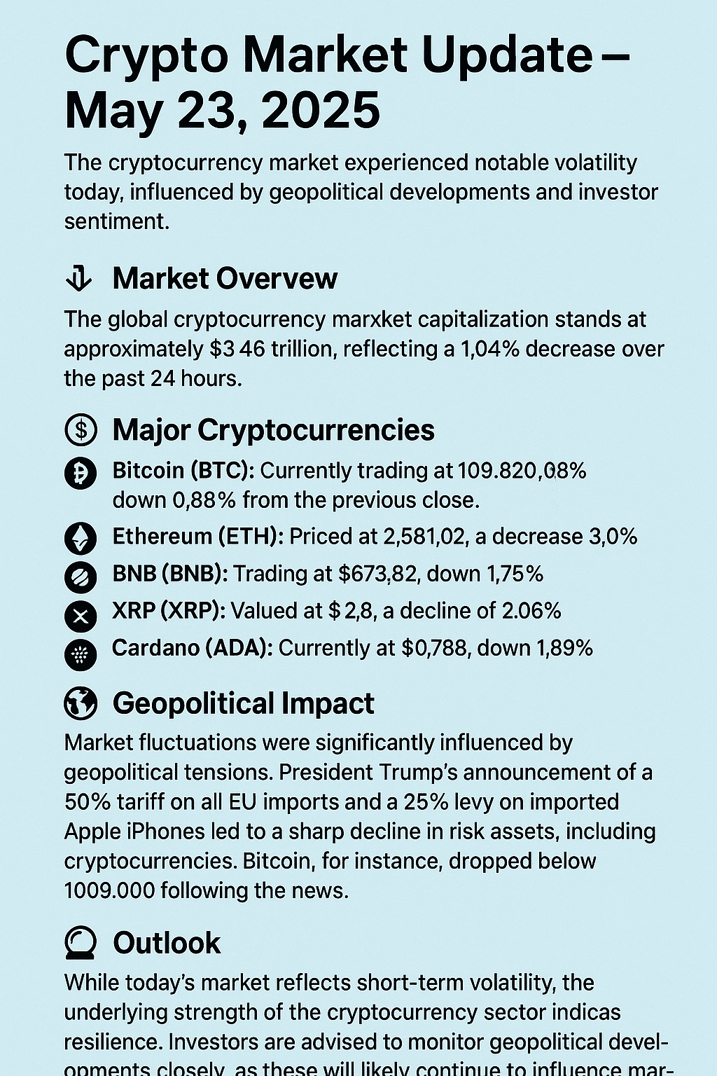 (BTC): Attualmente negoziato a $109,820, in calo dello 0.88% rispetto alla chiusura precedente.