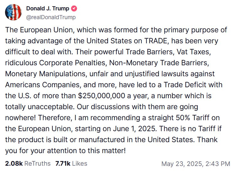 "Al diavolo con il movimento laterale," — pensò Donald Trump, e decise di raffreddare il mercato con alcune fresche notizie sui dazi che mirano all'UE.