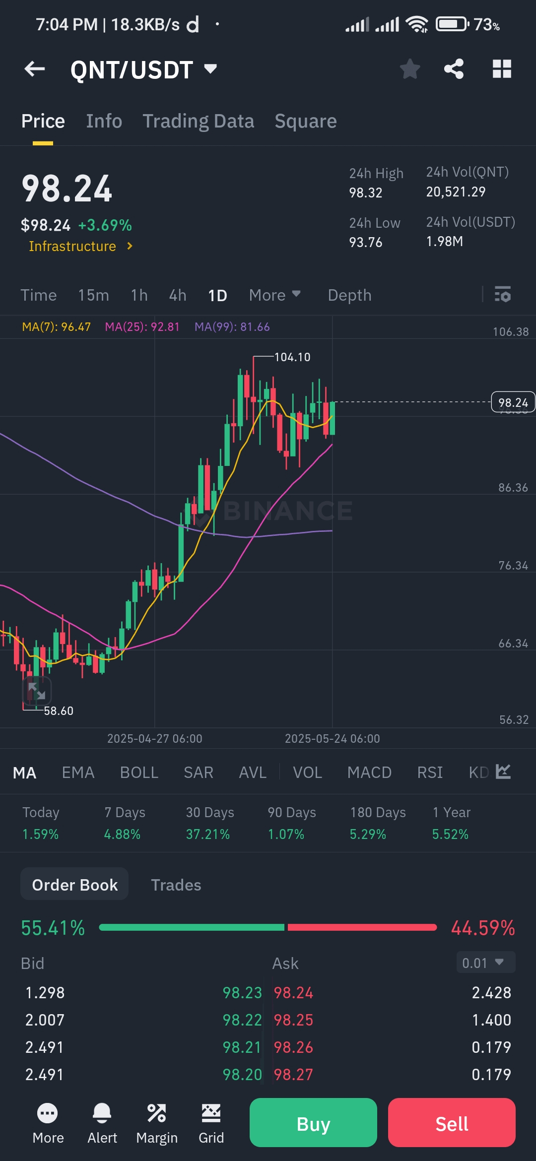 Valutazione Attuale del Mercato: $98.16 (+2.96% di apprezzamento giornaliero)