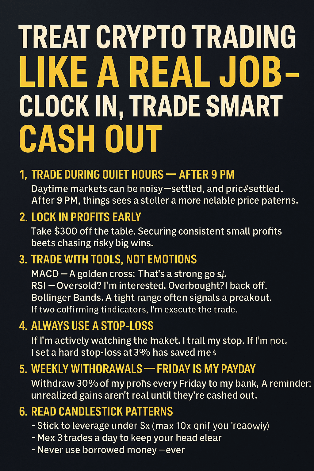 Quando sono entrato per la prima volta nel mondo delle criptovalute, ero ovunque—incollato ai grafici giorno e notte, inseguendo ogni improvviso aumento e spaventandomi ad ogni ribasso. Questo ha avuto un serio impatto su di me—sia emotivamente che finanziariamente. Tutto è cambiato quando ho iniziato a trattare il trading come un lavoro a tempo pieno.