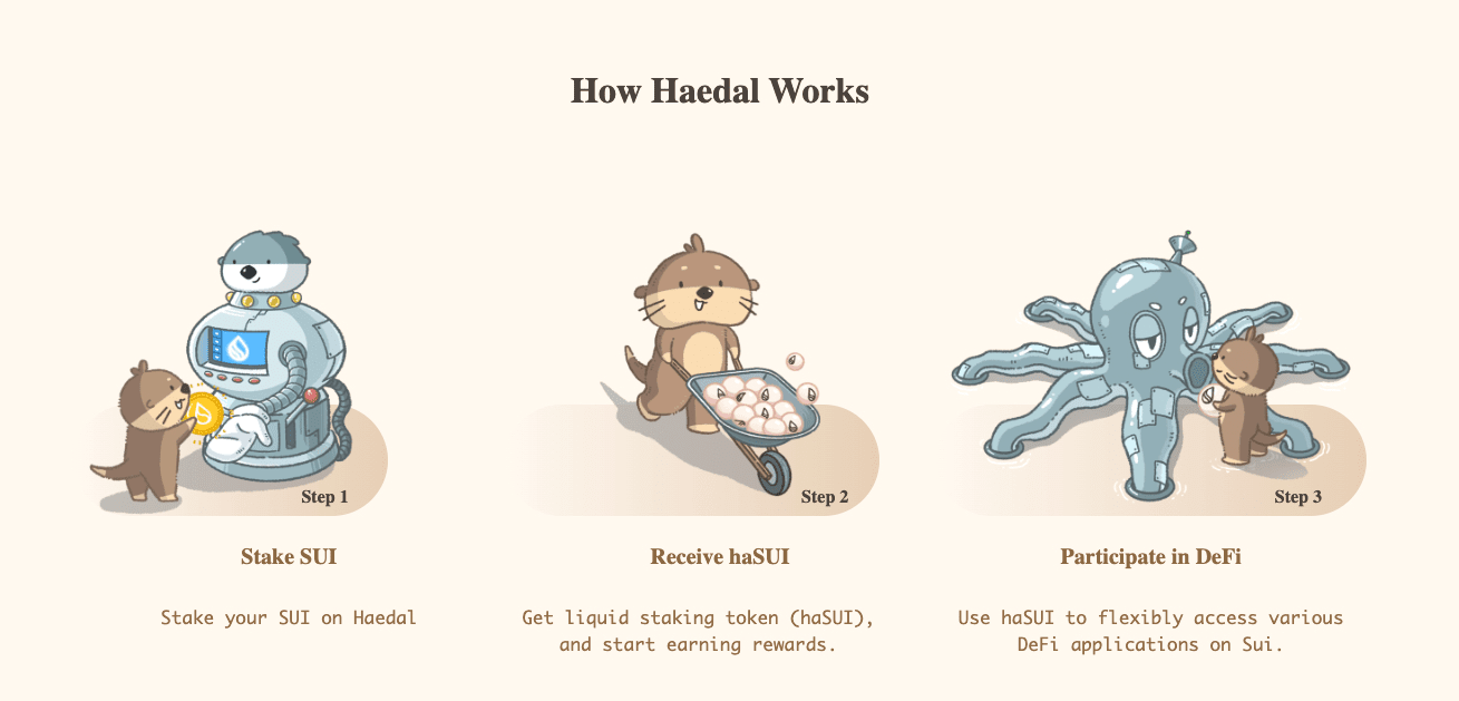 Haedal è un protocollo di staking liquido pionieristico sviluppato direttamente sulla piattaforma blockchain Sui. L'obiettivo del progetto è aiutare gli utenti a fare staking del token SUI in modo efficace, mantenendo nel contempo la possibilità di utilizzare la liquidità tramite il token haSUI – che rappresenta i loro asset in staking.