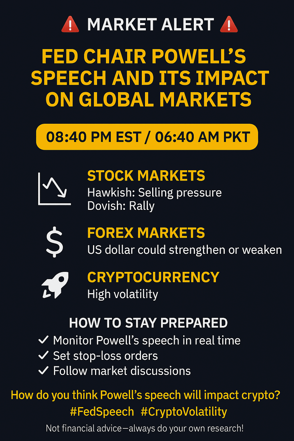 Gli investitori di tutto il mondo stanno seguendo attentamente il prossimo discorso del Presidente della Federal Reserve Jerome Powell, previsto per le 20:40 EST (Costa Est degli Stati Uniti) / 6:40 AM PKT (Fuso Orario del Pakistan). Le sue osservazioni potrebbero innescare movimenti significativi nei mercati azionari, forex e criptovalute.