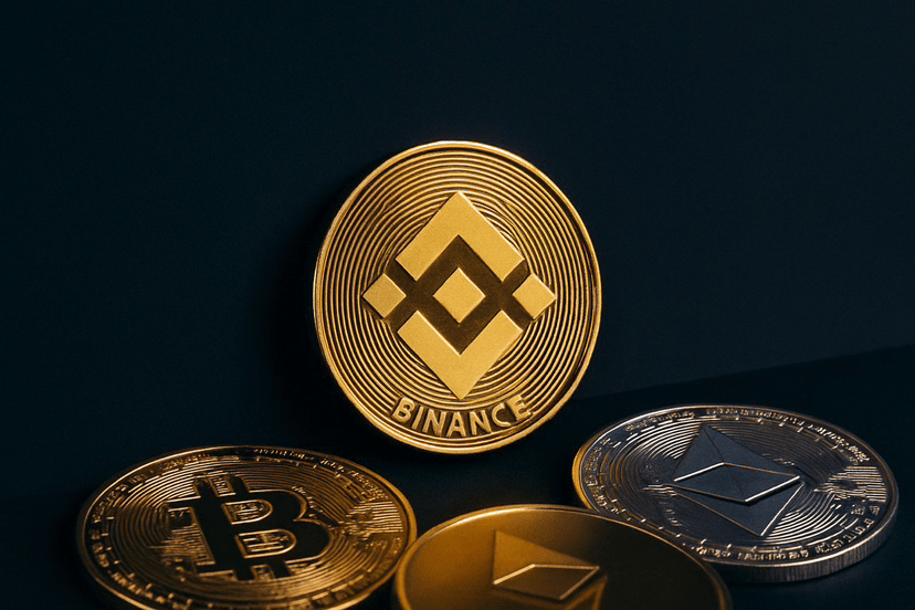 Un grafico con il logo di Binance al centro, con elementi visivi che simboleggiano la crescita (come frecce o grafici in salita), e icone o loghi di