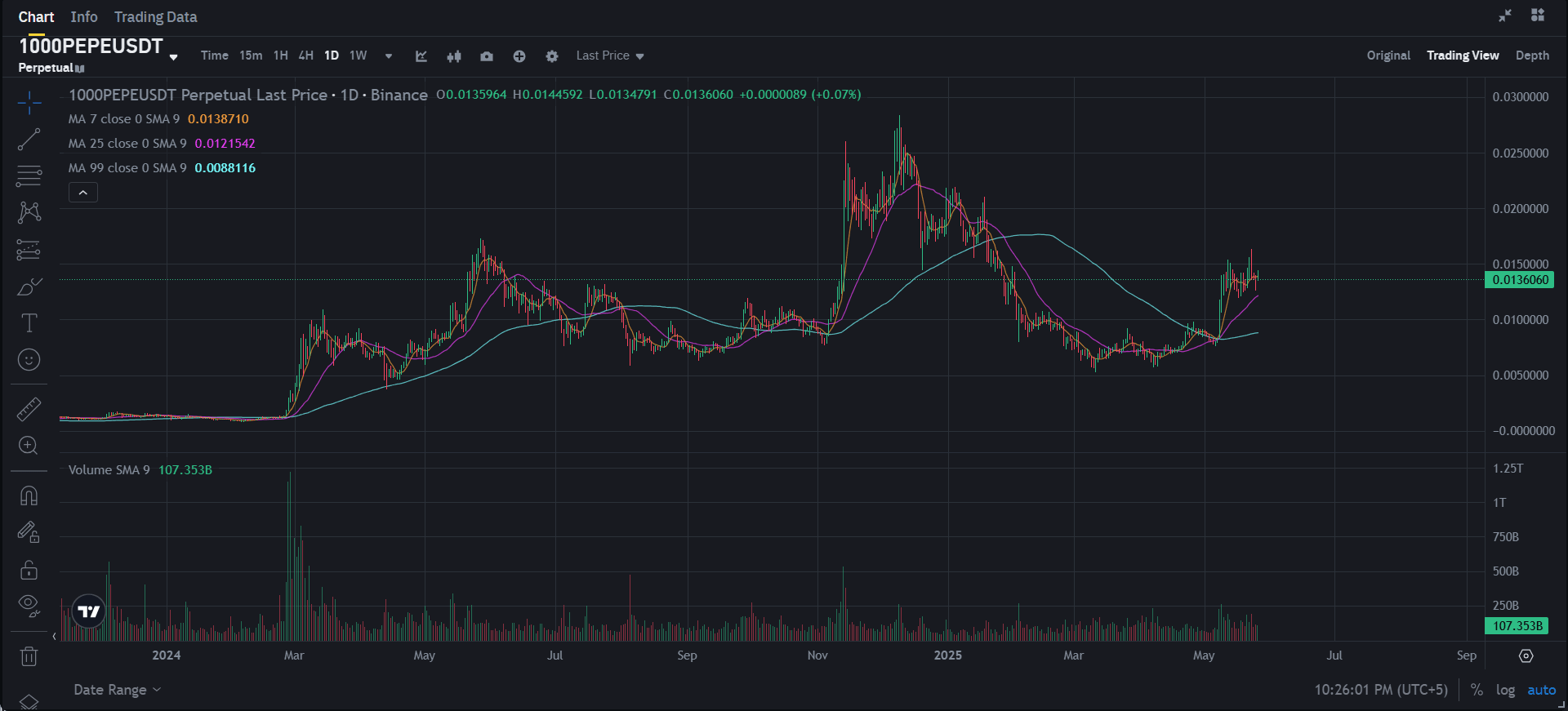 PEPE potrebbe ritestare il supporto vicino a $0.0125–$0.013 prima di tentare di nuovo un breakout.