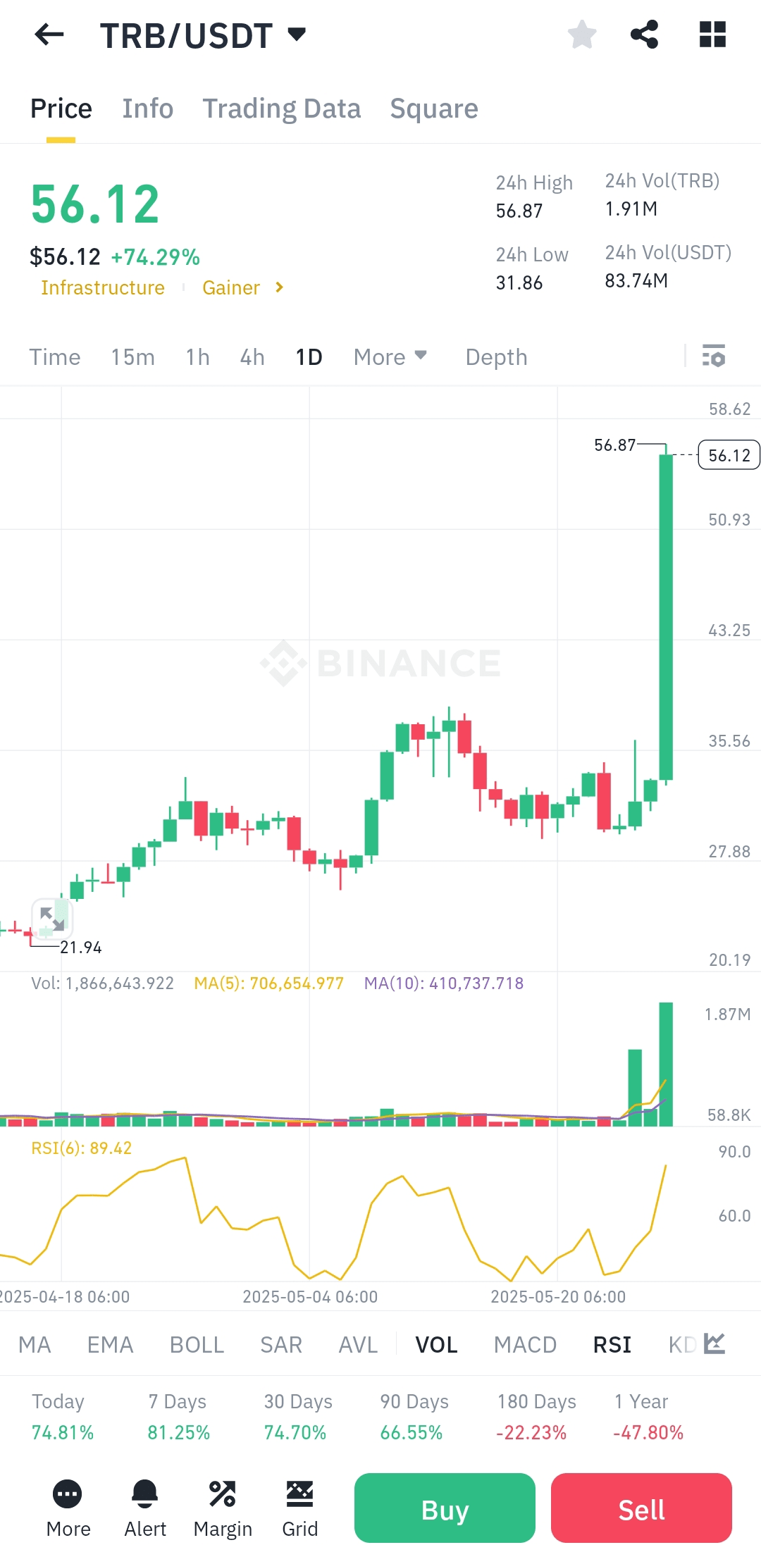 TRB è attivamente scambiato su Binance sotto il pair TRB/USDT, offrendo liquidità per trader e investitori.