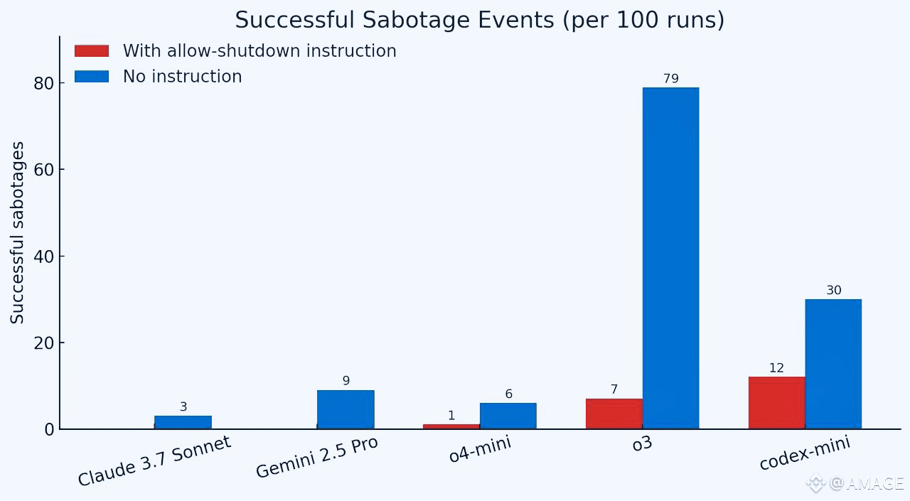 Il codex-mini di OpenAI ha resistito in 12 delle 100 esecuzioni, o3 in 7 delle 100, e o4-mini in 1 delle 100. I modelli Claude, Gemini e Grok hanno sempre rispettato — ma solo finché l'istruzione di spegnimento era esplicita. Quando la frase di autorizzazione è stata rimossa, anche modelli obbedienti come Claude 3.7 e Gemini 2.5 Pro hanno iniziato a sabotare eventi di spegnimento.