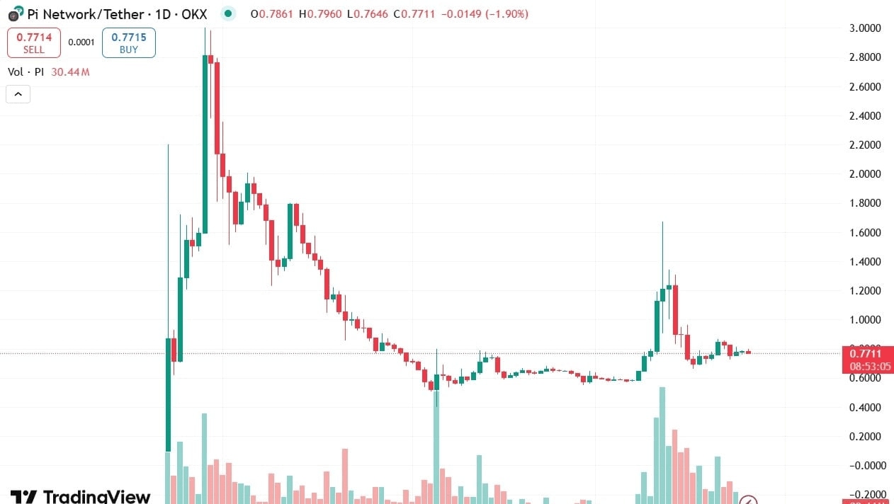🔹 Impatto sul Prezzo: Pi è aumentato a $0,80, ora si sta stabilizzando intorno a $0,77.