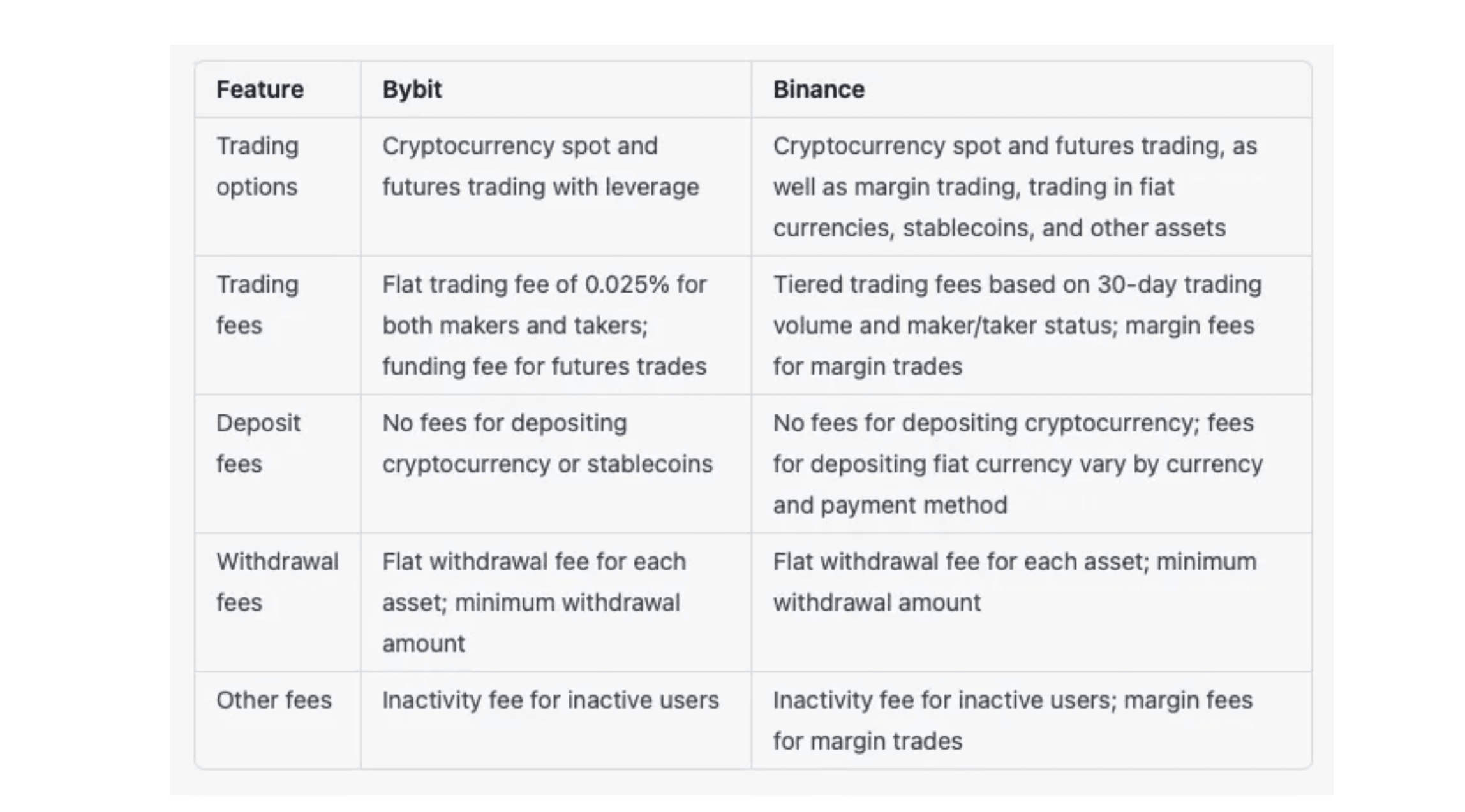 Bybit: Si concentra principalmente sul trading di derivati, con meno offerte di prodotti aggiuntivi rispetto a Binance.