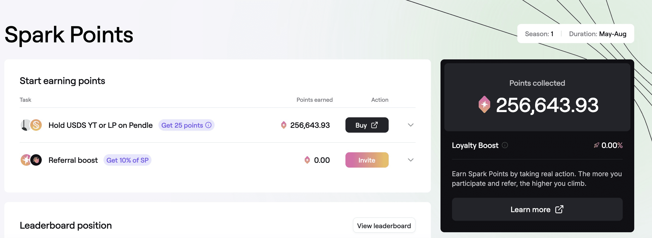 Deposita USDC/DAI su Spark, convertendoli in USDS, interagisci con l'account ufficiale, unisciti a Discord, sblocca l'identità, ecc.