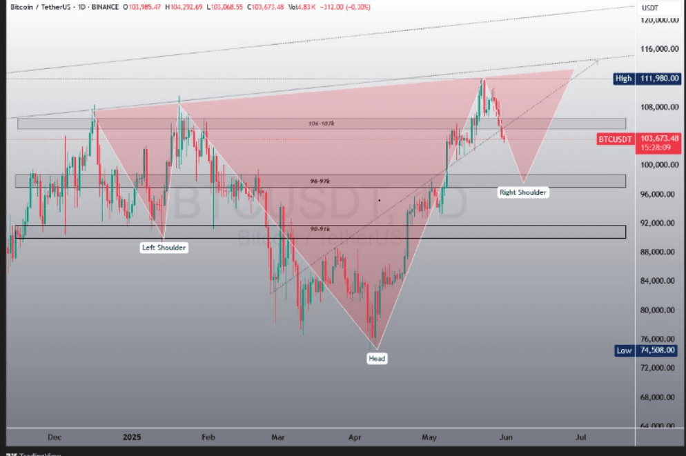 Un grafico recente di $BTC Bitcoin (BTC/USDT) sul timeframe giornaliero presenta un classico pattern tecnico che potrebbe indicare una possibile inversione di tendenza. Tuttavia, i trader stanno osservando da vicino i livelli di resistenza chiave per conferma.