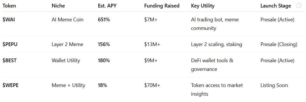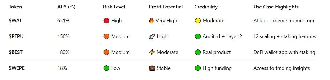 Questi progetti uniscono alti APY con casi d'uso reali o innovativi—dai bot AI ai Layer 2 e wallet DeFi. Partecipare presto alle presale e allo staking può essere gratificante—ma non senza rischio.