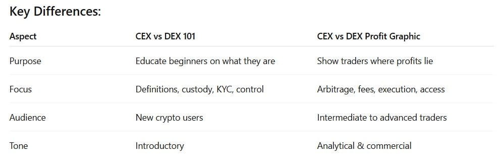 Il grafico sopra va oltre CEXvsDEX101 — è più simile a un livello CEXvsDEX Profits 201 o 301. Si concentra specificamente su: