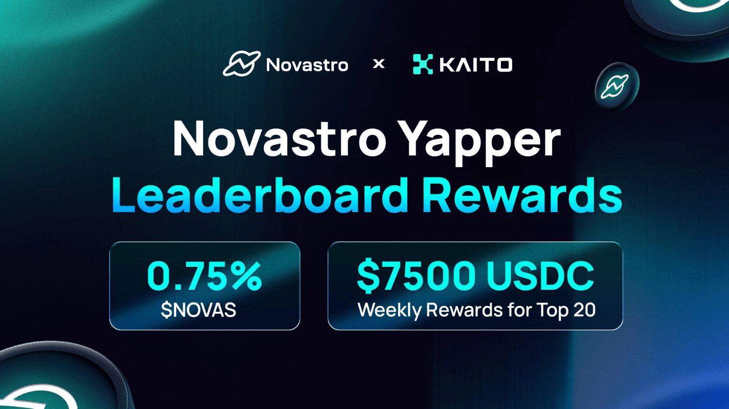Per attrarre tutti, ha lanciato un enorme pool di premi sulla piattaforma Kaito, con un airdrop di token $NOVAS pari allo 0,75% dell'offerta totale per Yappers e staker KAITO, oltre a un premio mensile di 30.000 dollari in USDC.
