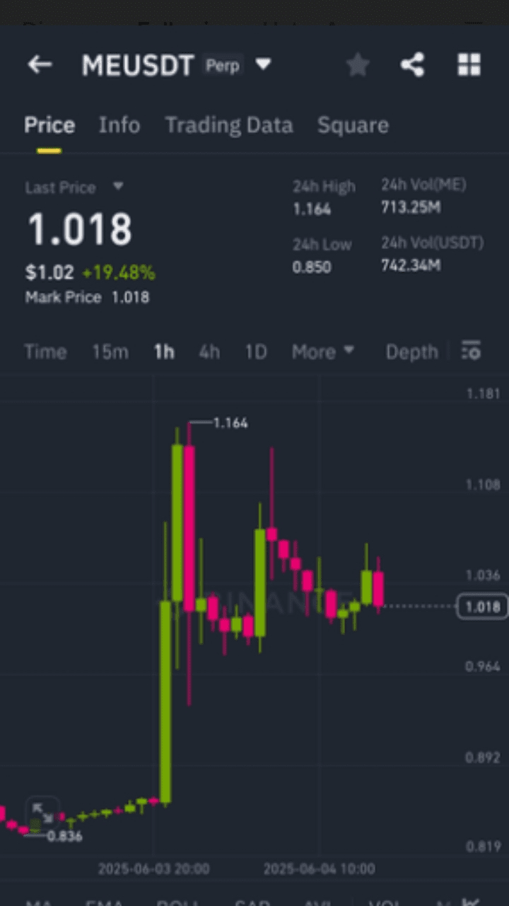 $ME /USDT è appena aumentato del +19%, superando la resistenza a breve termine su oltre $740M in volume USDT. Il passaggio da $0.85 a oltre $1.00 è un chiaro segnale di forte intenzione rialzista — e la prossima tappa sembra probabile.