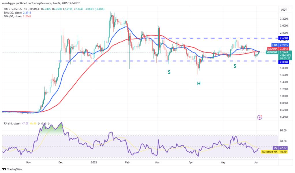 Ether (ETH) è rimbalzato dall'EMA a 20 giorni ($2.528) il 2 giugno, indicando che il sentimento rimane positivo e i trader stanno acquistando nei ribassi.