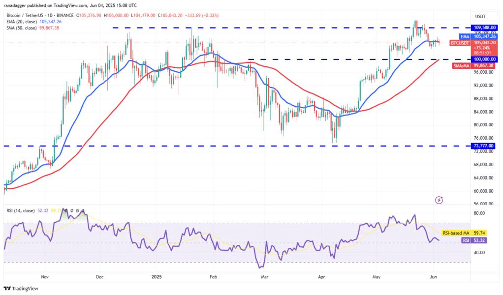 sta mantenendo vicino al livello di $105.000, ma il fallimento dei tori nel sostenere il rimbalzo del 3 giugno suggerisce una mancanza di domanda a livelli più alti. Gli analisti si aspettano che Bitcoin scenda al livello psicologicamente cruciale di $100.000.