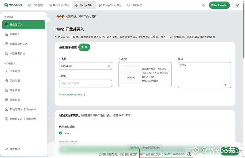 -零门槛造币:用户支付0.02–0.05 SOL即可创建固定10亿供应量的代币,初始价格锁定0.000000028 SOL(约$0.00004)。
