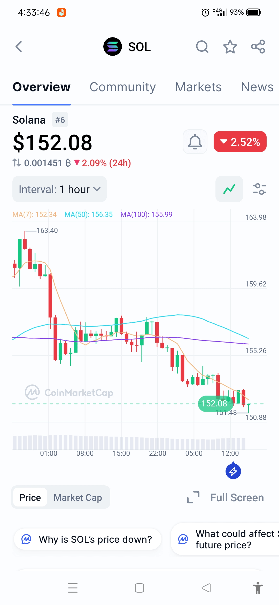 Al 5 Giugno 2025, Solana (SOL) viene scambiato a circa $152.01 USD, riflettendo una diminuzione del 2.84% nelle ultime 24 ore. L'intervallo di trading della giornata ha visto un massimo di $157.65 e un minimo di $151.53.