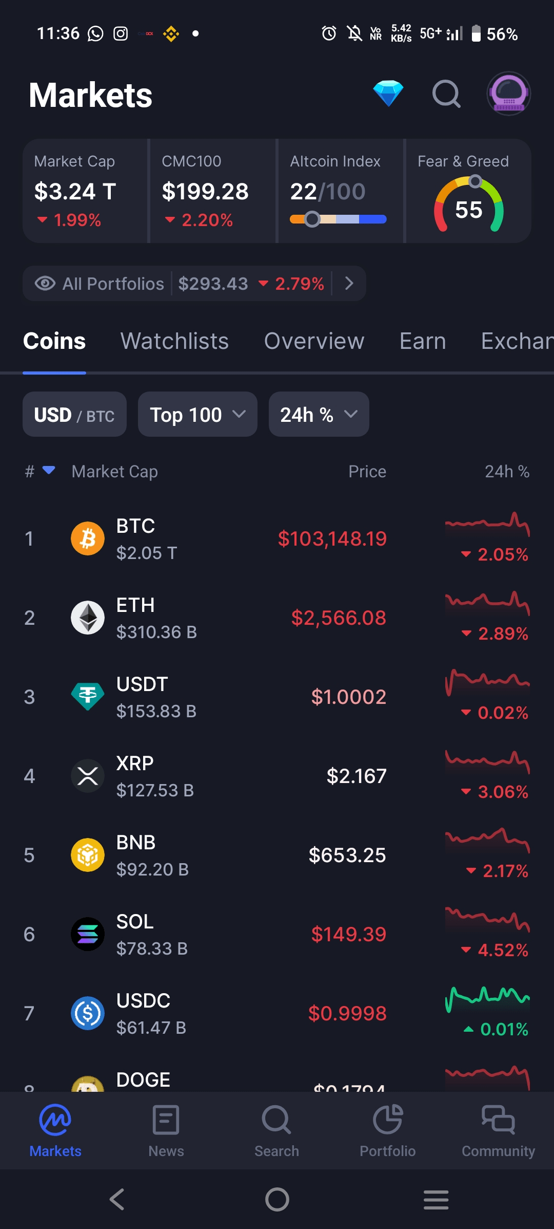 1. Panoramica del mercato: La maggior parte delle monete in calo