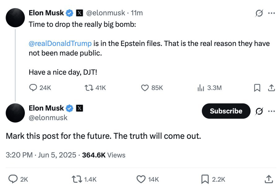 Musk ha lanciato ombre, suggerendo che il nome di Trump apparisse in documenti legati a Epstein.