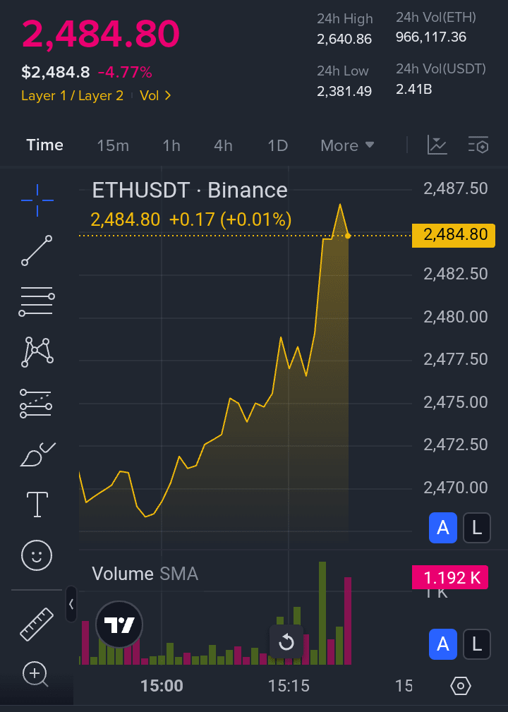 - *Variazione 24h:* -136.43 (circa -5.23%)