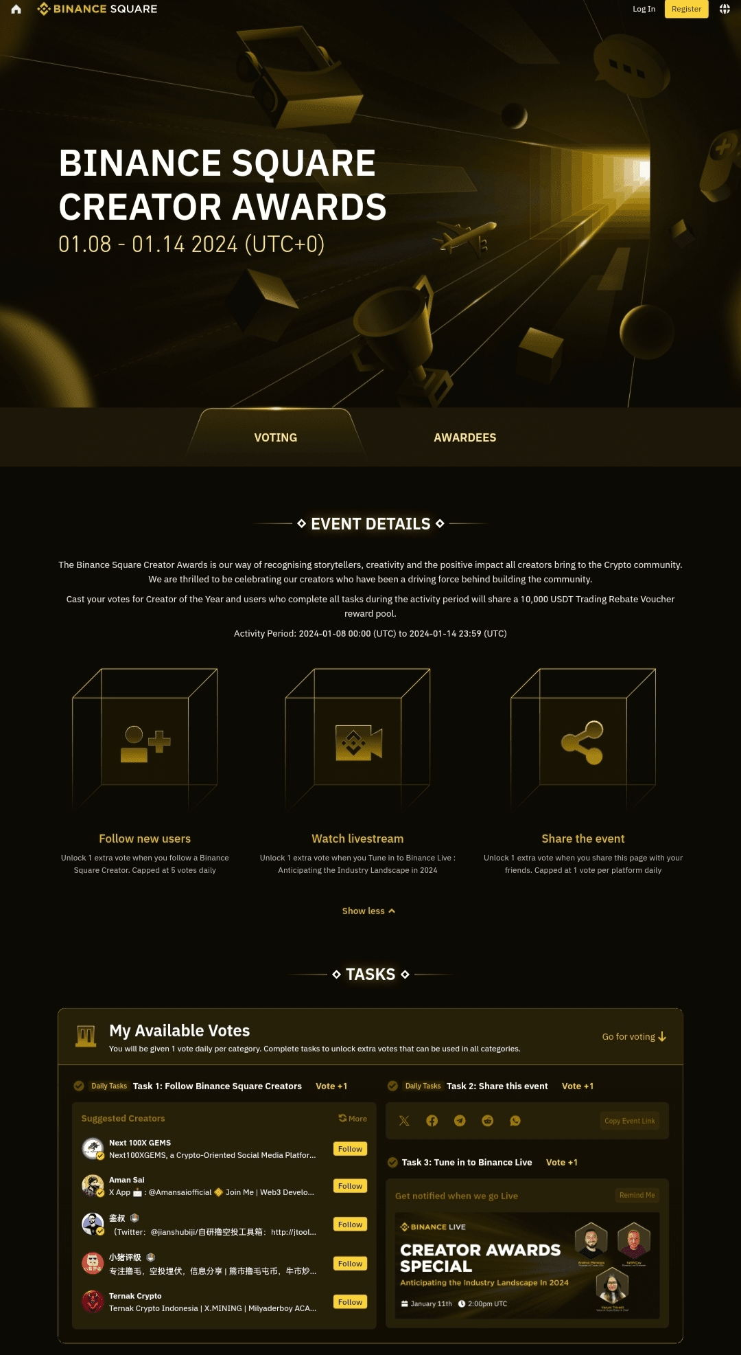 Unisciti a noi per l'accattivante live streaming dei Binance Square Awards!