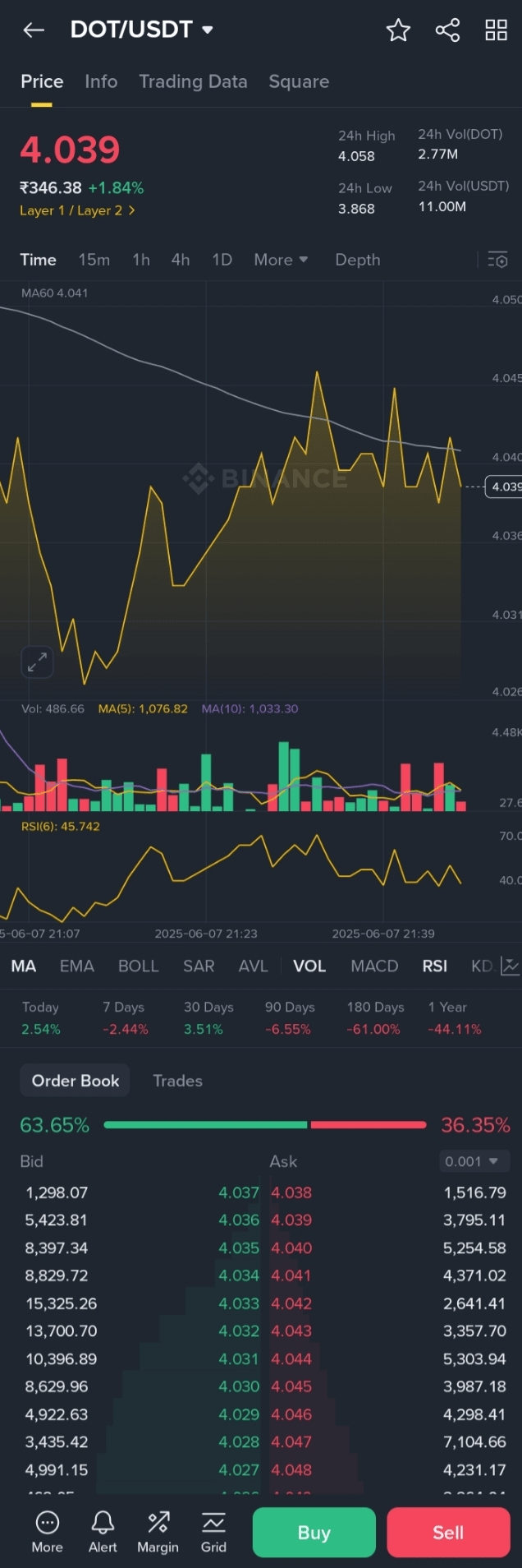 Polkadot ($DOT ) attualmente scambia a $4.04, riflettendo un aumento dell'1.76% nelle ultime 24 ore.