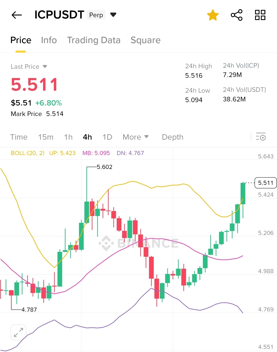 Secondo un'analisi collegata a Binance, un breakout sopra $5.35–$5.50 potrebbe spingere ICP verso $6.50, potenzialmente fornendo rendimenti ~28% dai livelli attuali.